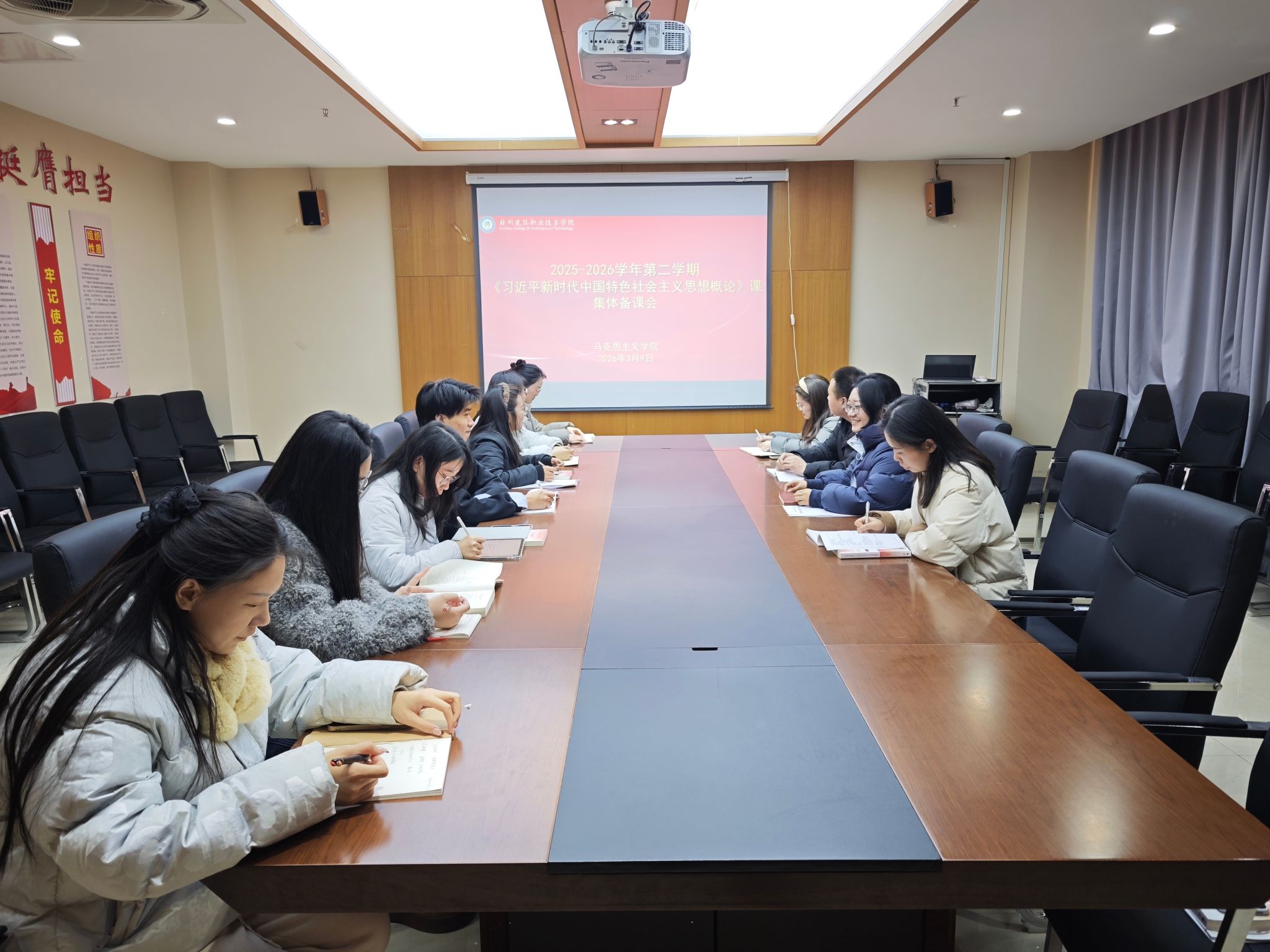 针对具体教学过程实施,王悦琳进一步明确:课堂教学要注重理论与实际相结合、强化思想引领,考试考核要注重过程性评价,课程实践活动需提前规划实施方案,确保教学各环节衔接顺畅、标准统一。与会成员结合自身教学经验,围绕新学期课程内容体系进行深度研讨,对教学安排、实施难点及优化方向展开充分交流,为后续教学工作落地奠定基础。